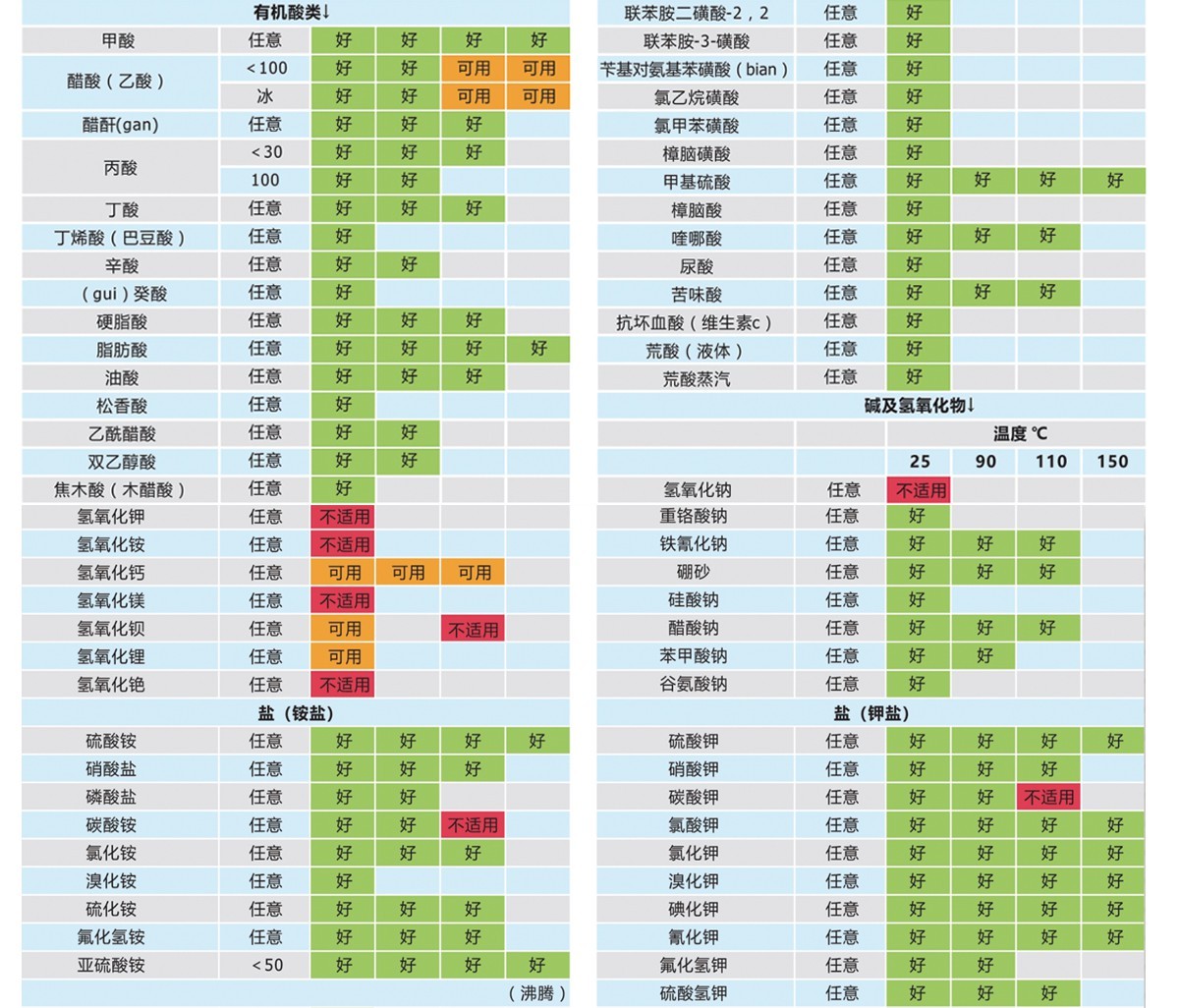 經過實驗和生產中的實際應用,高性能復合材料真空泵可以很好的適用于抽吸氯化氫、磷酸、鹽酸、甲苯、乙醇、二氧化硫、二氯甲烷、二氯乙烷、溴化氫等多種酸性腐蝕氣體和有機溶劑(詳見纖維復合材料耐腐蝕性能表)。